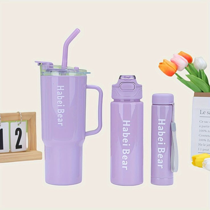 Introducing our premium Tumbler 3-Piece Bottle Set with Straw, designed for those who appreciate both functionality and style in their beverage containers. Each tumbler in this set is crafted from high-quality, BPA-free plastic, ensuring that your drinks remain safe and free from harmful chemicals. The sleek design features a double-wall construction that not only keeps your beverages at the desired temperature for longer periods but also prevents condensation from forming on the exterior, keeping your hands and surfaces dry. With a generous capacity, these tumblers are perfect for a variety of drinks, including iced coffee, smoothies, and refreshing water infusions.