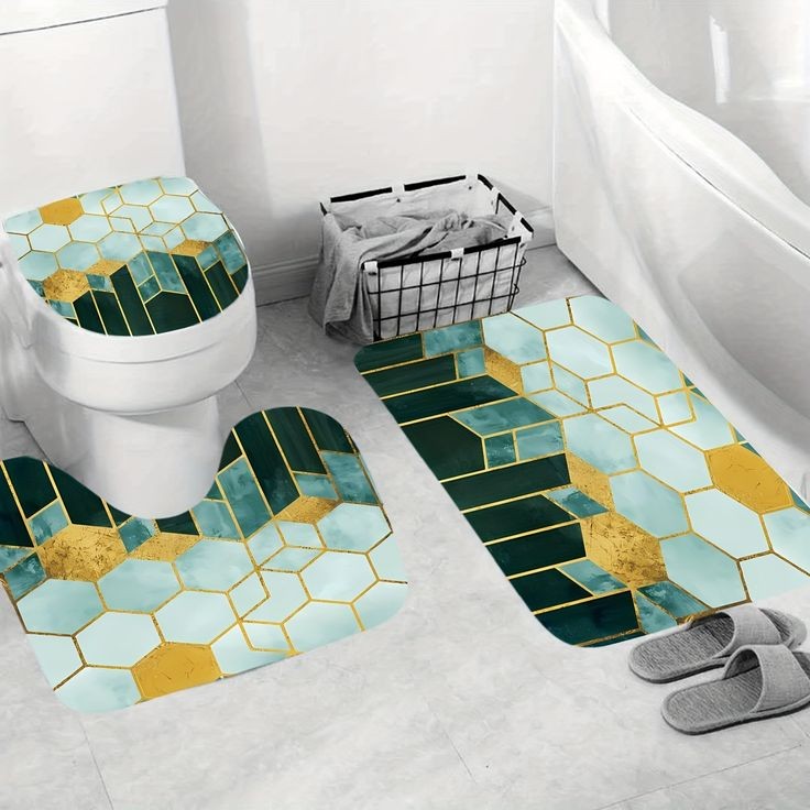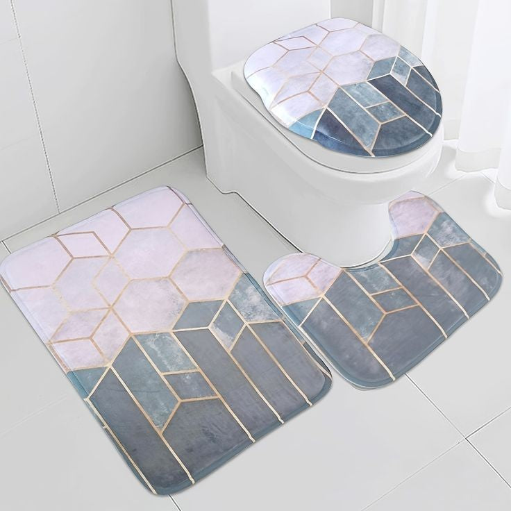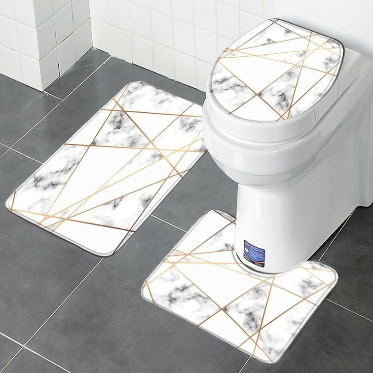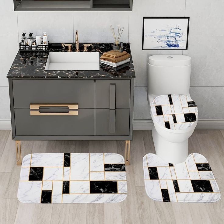 The bath mat/U-shaped rug is made of soft flannel and has a non-slip backing, making it non-slip and durable.