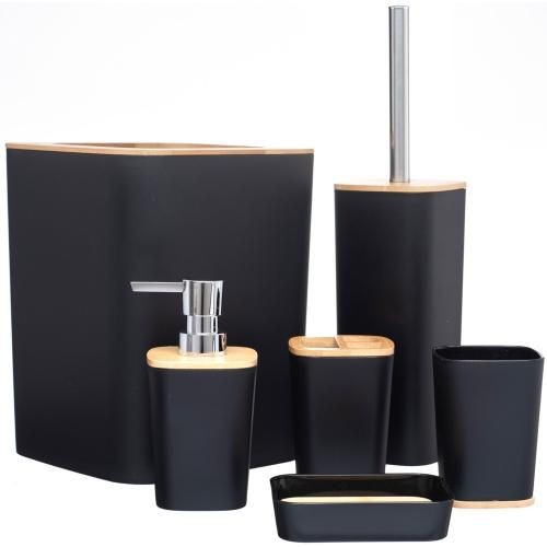 6 Pcs Washroom Set With Wooden Lid Plastic
