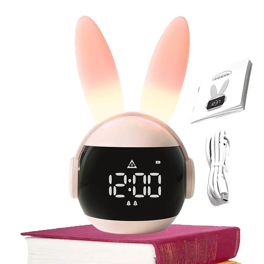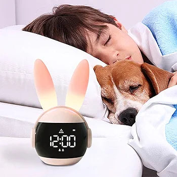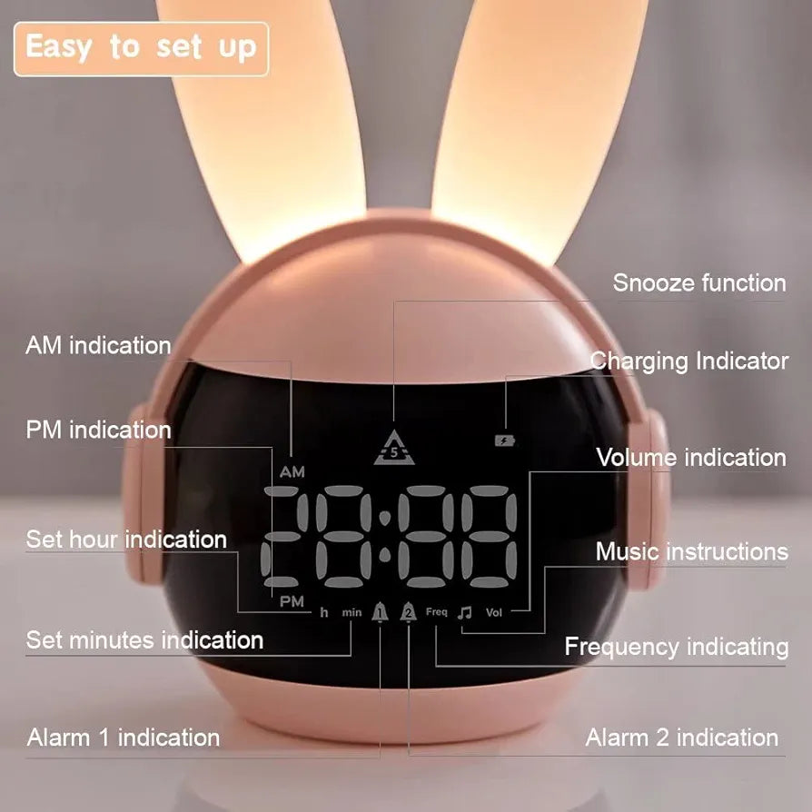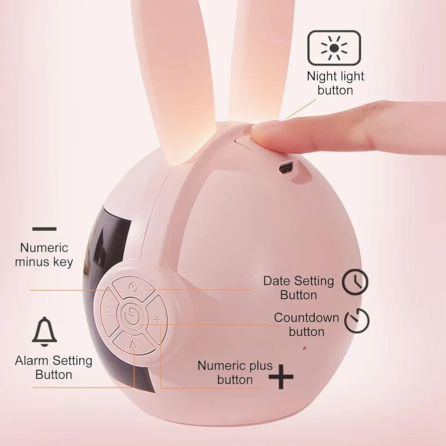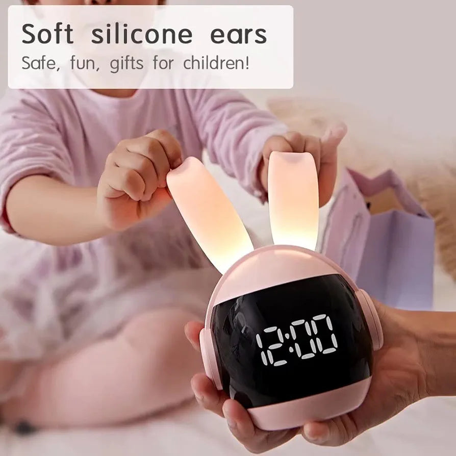 Adorable Rabbit LED Alarm Clock! This cute companion features a digital display and soothing night light, making it perfect for kids and adults alike.