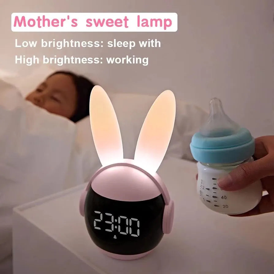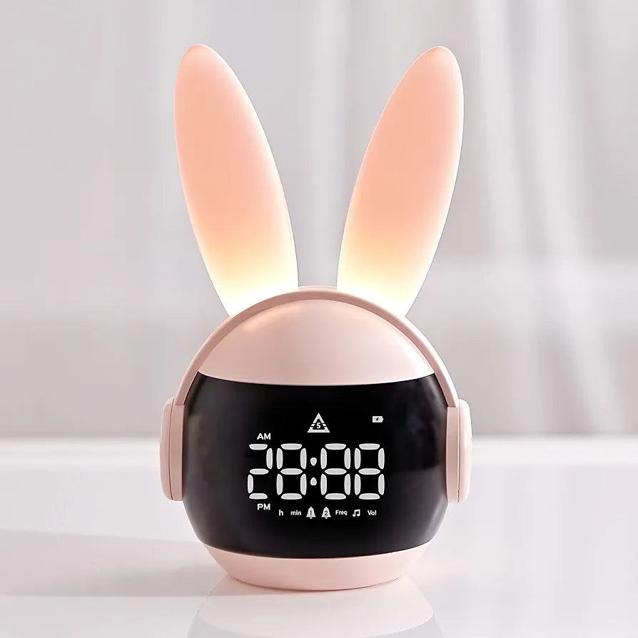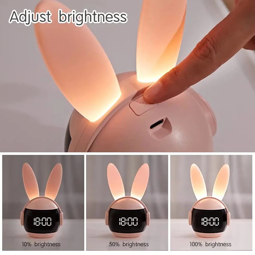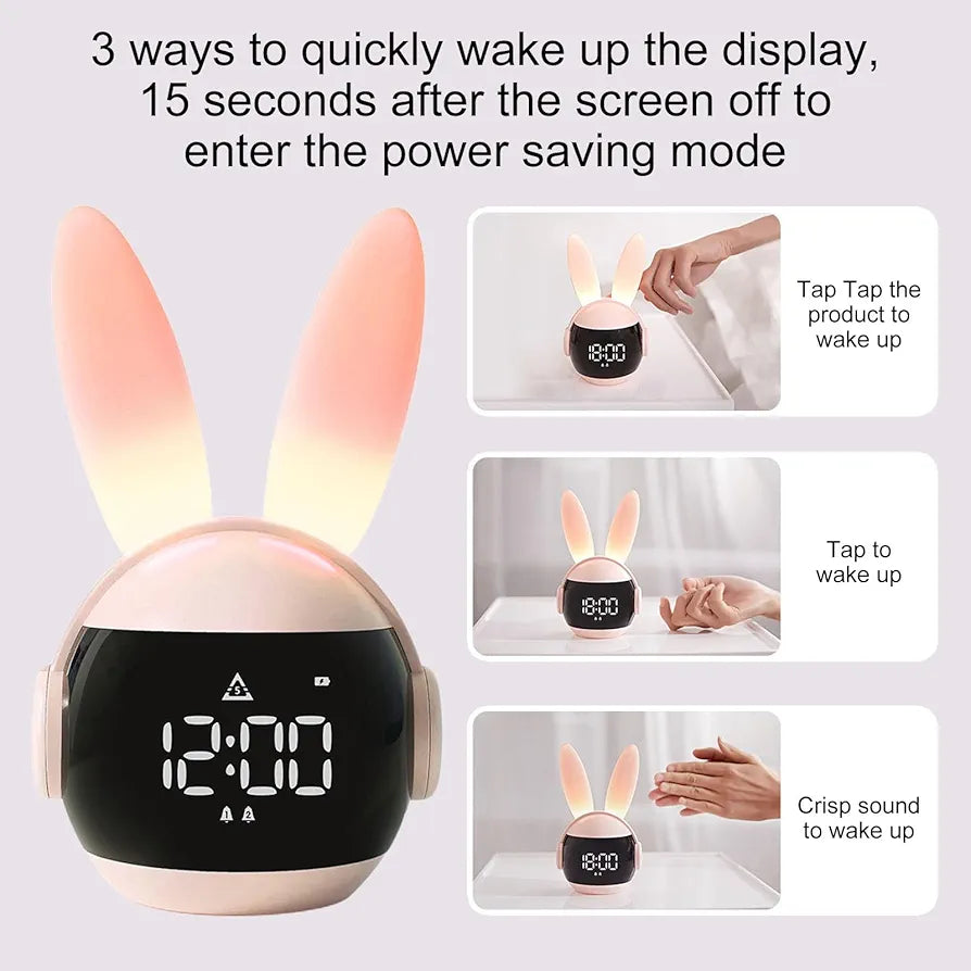 Adorable Rabbit LED Alarm Clock! This cute companion features a digital display and soothing night light, making it perfect for kids and adults alike.