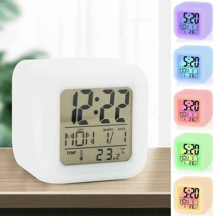【COLORFUL LIGHT】7 color changes : This cool glow in the dark color changing alarm clock / mood lamp also displays a temperature thermometer display.