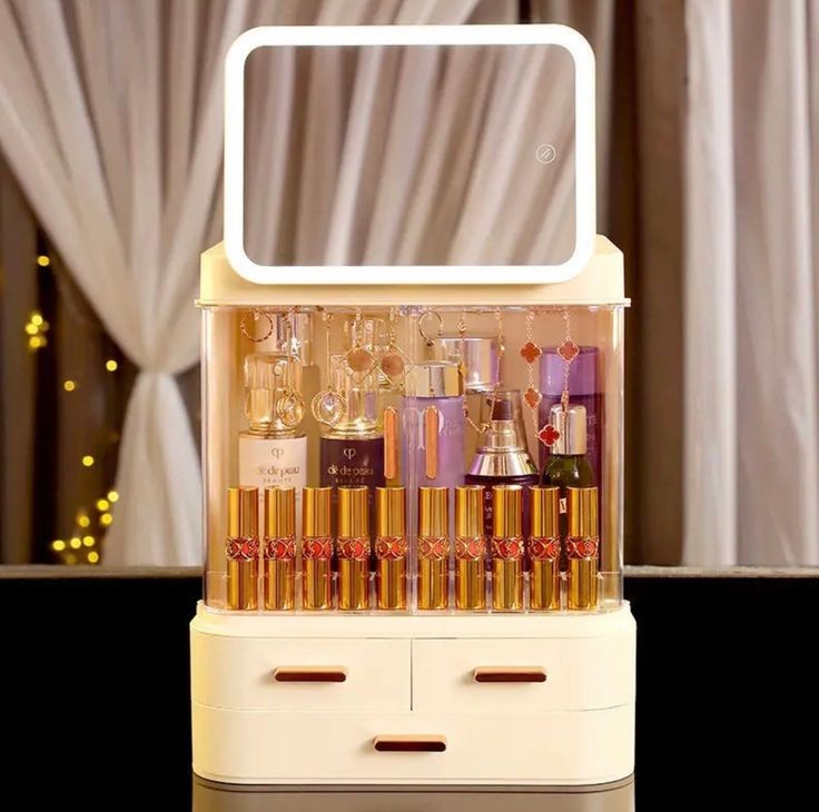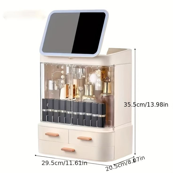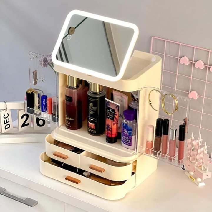 Cosmetics Storage Box With Mirror Led Light