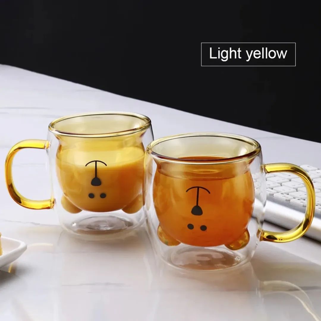 Novelty Design : This cute bear coffer cup in double-wall Insulated glasses and each mug boasting with a cute bear.No matter hot or cold drinking you want to hold, your hands will be confortable without any worries.
